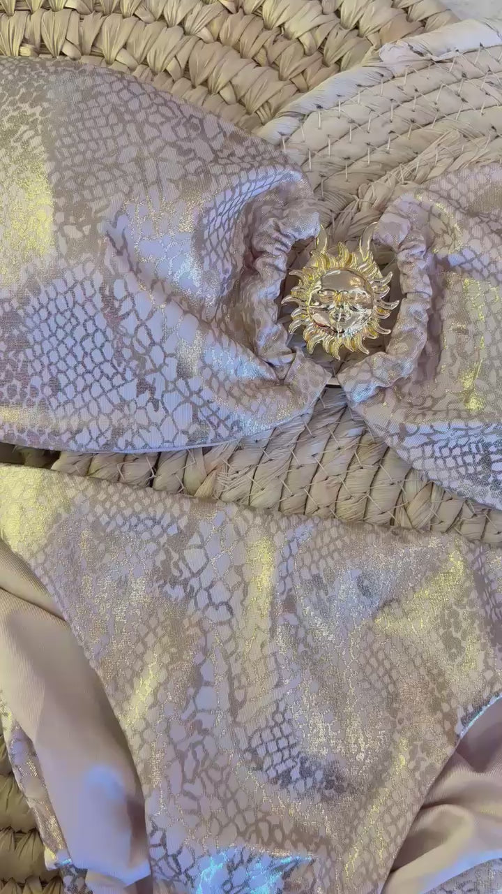 Shine bright in the Brilliant Ivory Gold Cheeky Set, a playful gold bikini designed to turn up the fun at the beach or pool. Its cheeky cut adds a flirty edge, while the shimmering gold fabric brings a radiant glow to your sunny adventures. Perfect for making waves with confidence and style.
