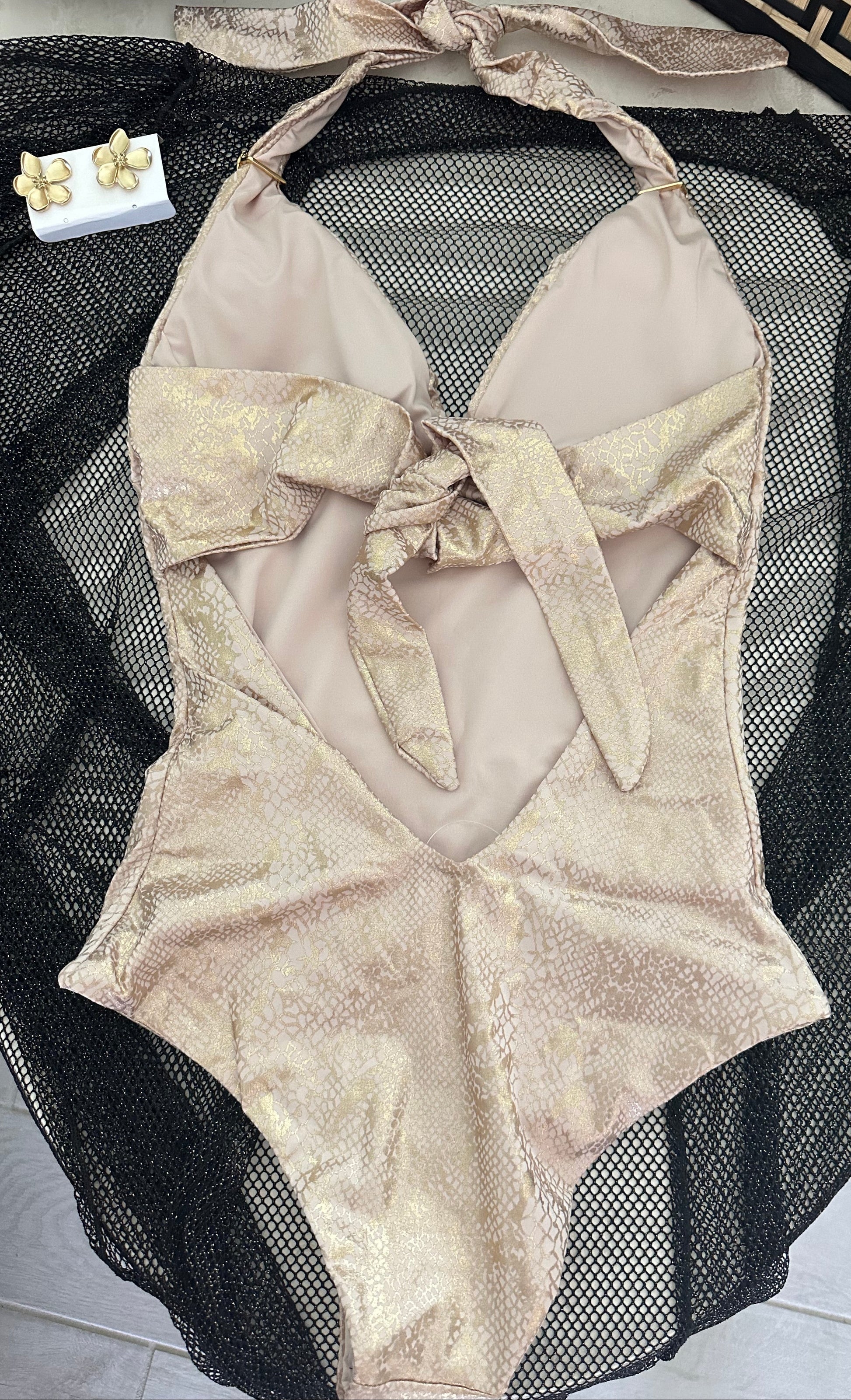 The Brilliant Ivory Gold One-Piece offers a sophisticated blend of creamy ivory and elegant gold tones. Crafted to enhance your natural silhouette, this swimsuit delivers timeless style with a modern refinement, perfect for making a graceful statement at any pool or beach setting.